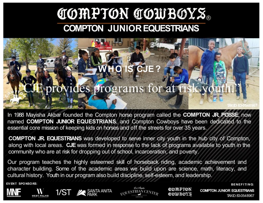 benefits The Nyuis Foundation, and the Compton Junior Equestrians, who provide atrisk